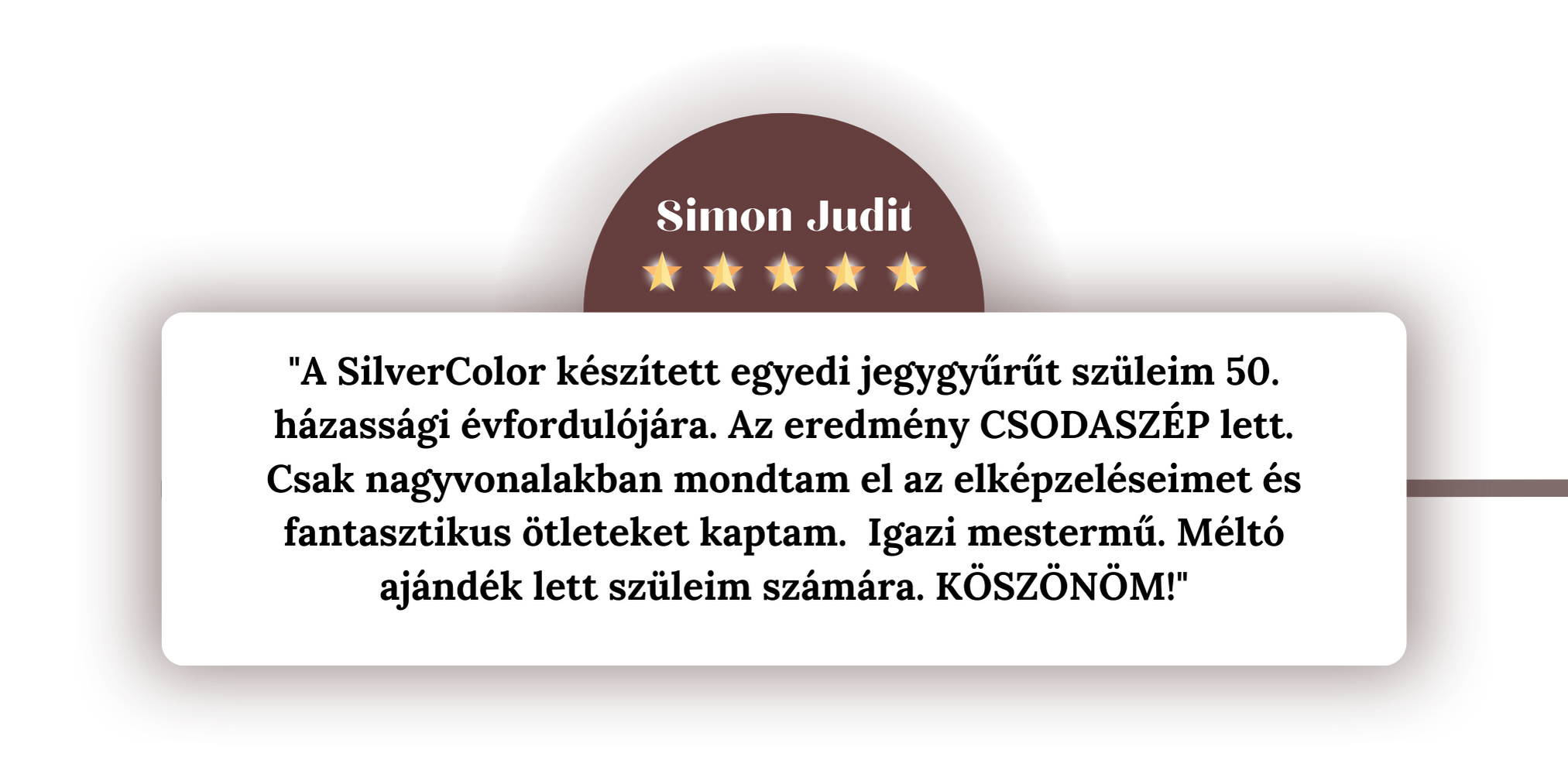 “Mi a SilverColor-nál azondolgozun, hogy népszerűsítsük és visszahozzuk a divatba a kézzel készített ékszereket. Úgy gondoljuk, hogy nincs annál nagyobböröm, mint mikor a saját kezünk munkájával és törődésünkkelszerezhetünk örömet másoknak. A SilverColor ékszerei magukban hordoznak 30 év ötvös tapasztalatot, és kifinomultságot”